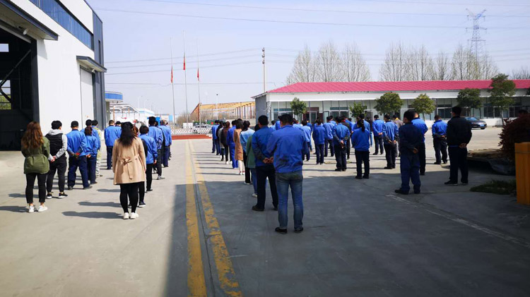4月4號(hào)10.00整我們福瑞德機(jī)械員工自覺的集合,表情莊嚴(yán)肅立,集體默哀三分鐘。伴隨著準(zhǔn)時(shí)想起防空警報(bào),我們?nèi)w員工送去了對(duì)逝者的思念,3分鐘讓我們思考太多太多我們福瑞德全體員工放下手中的工作,集體列隊(duì),希望他們一路走好。