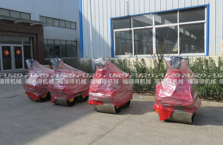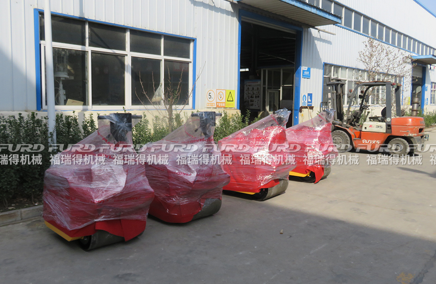 3月12日,福瑞得機械將廣州客戶一周前訂購的4臺手扶雙輪壓路機打包發(fā)出。