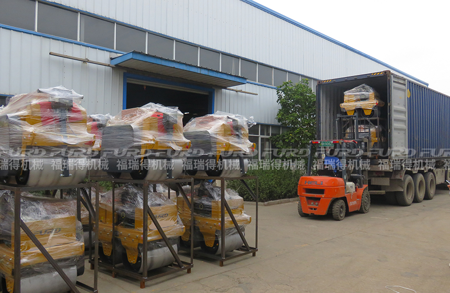 10月25日,福瑞得機(jī)械46臺(tái)手扶雙鋼輪壓路機(jī)裝車(chē)出口墨西哥。