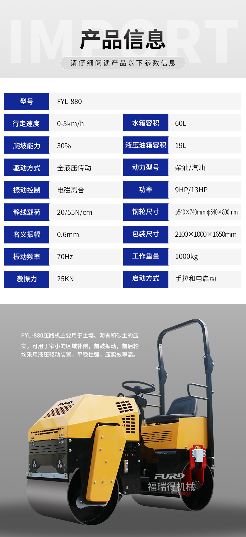 FYL-880 1T全液壓振動壓路機
